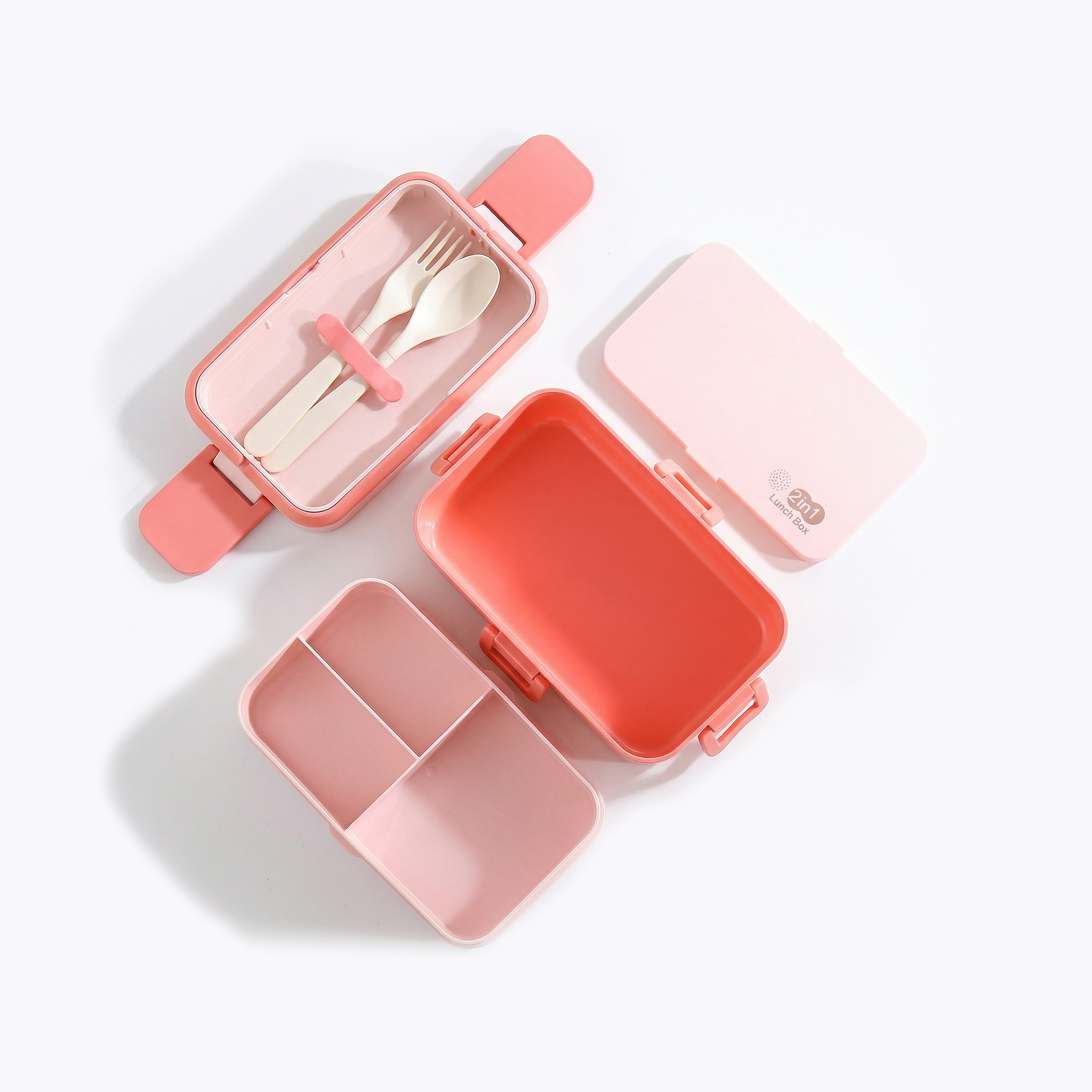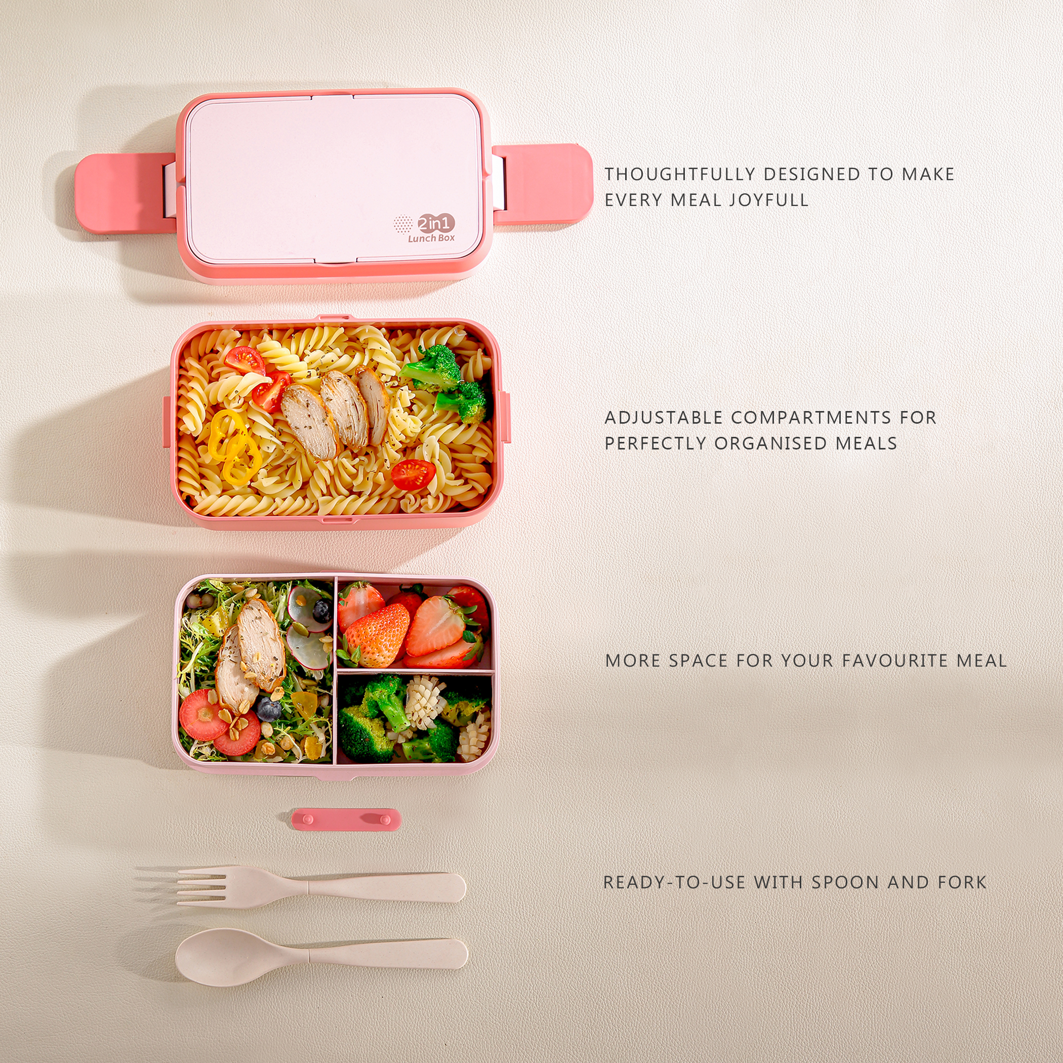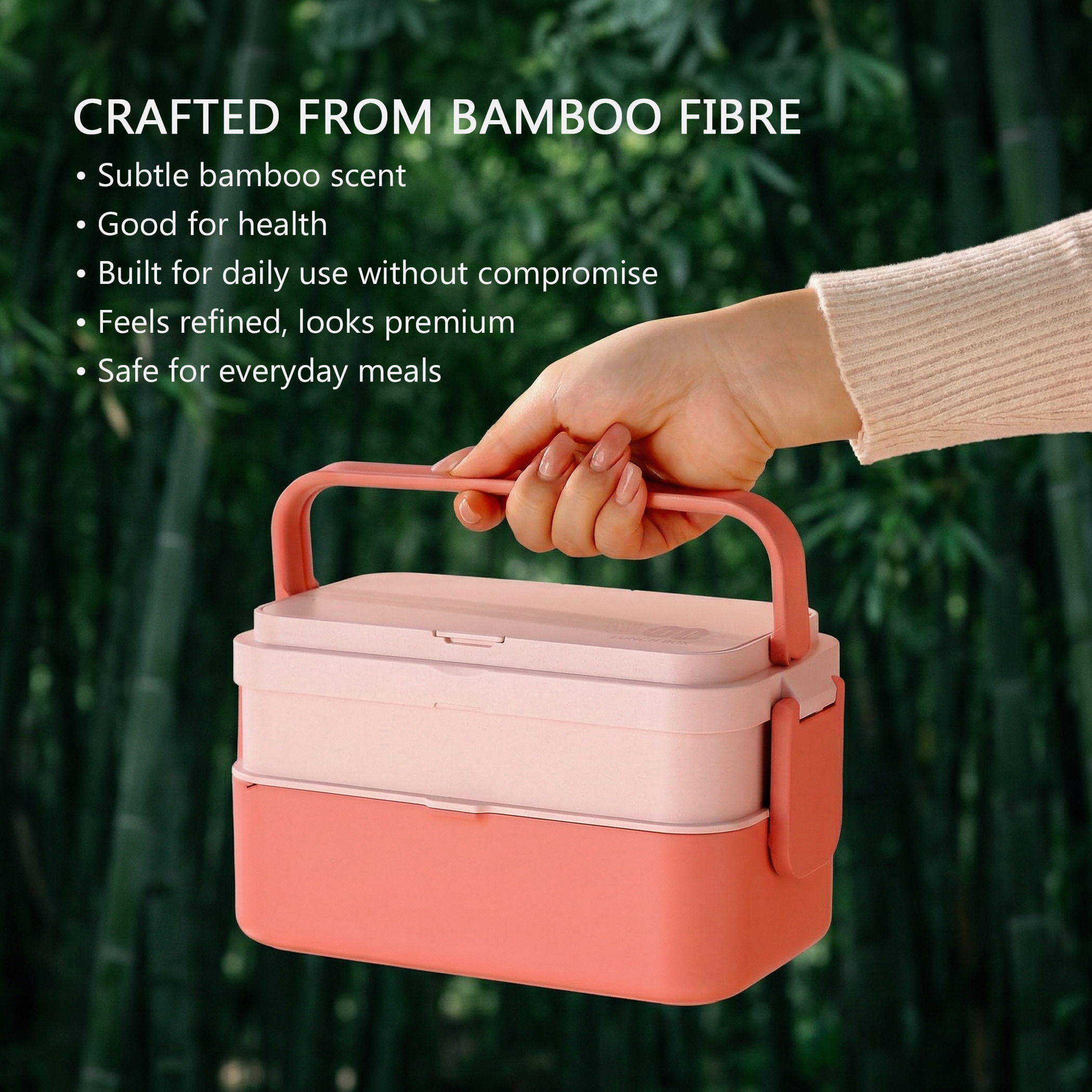 SCL Steelo 2 in 1 Bento Lunch Box |Cherry Blossom Pink Bamboo Fibre Tiffin Box with Fork & Spoon |Eco-Friendly, Microwavable & Dishwasher Safe