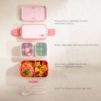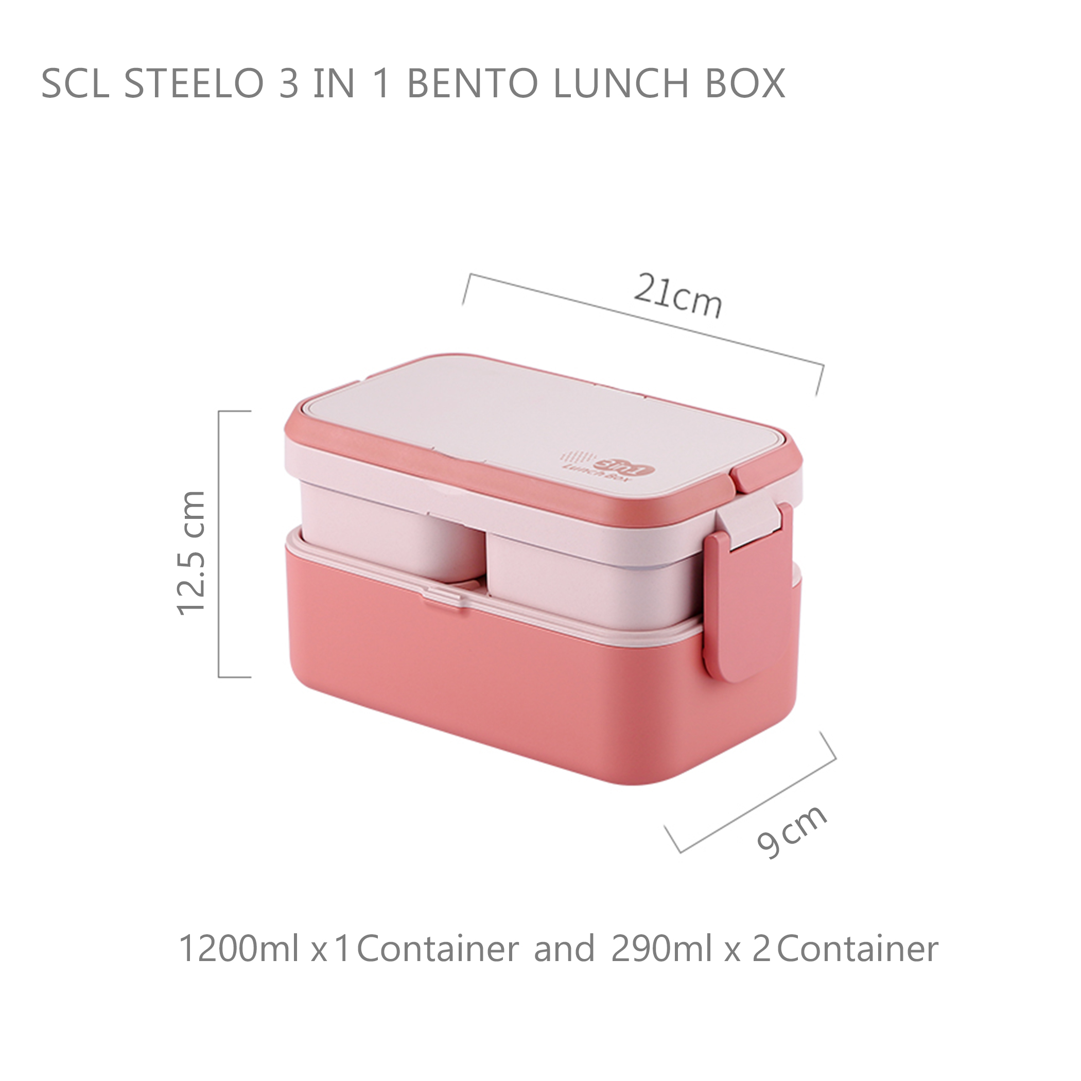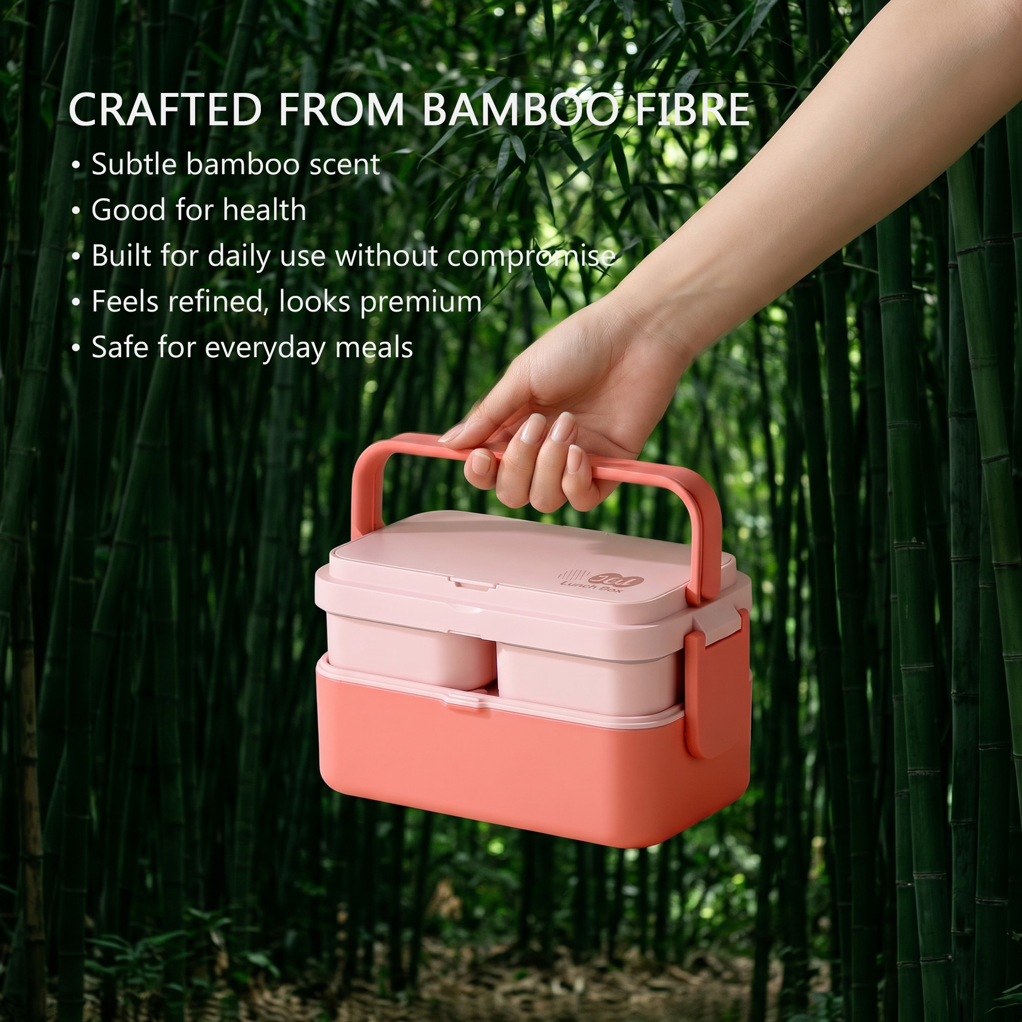 SCL Steelo 3 in 1 Bento Lunch Box |Cherry Blossom Pink Bamboo Fibre Tiffin Box with Fork & Spoon |Eco-Friendly, Microwavable & Dishwasher Safe