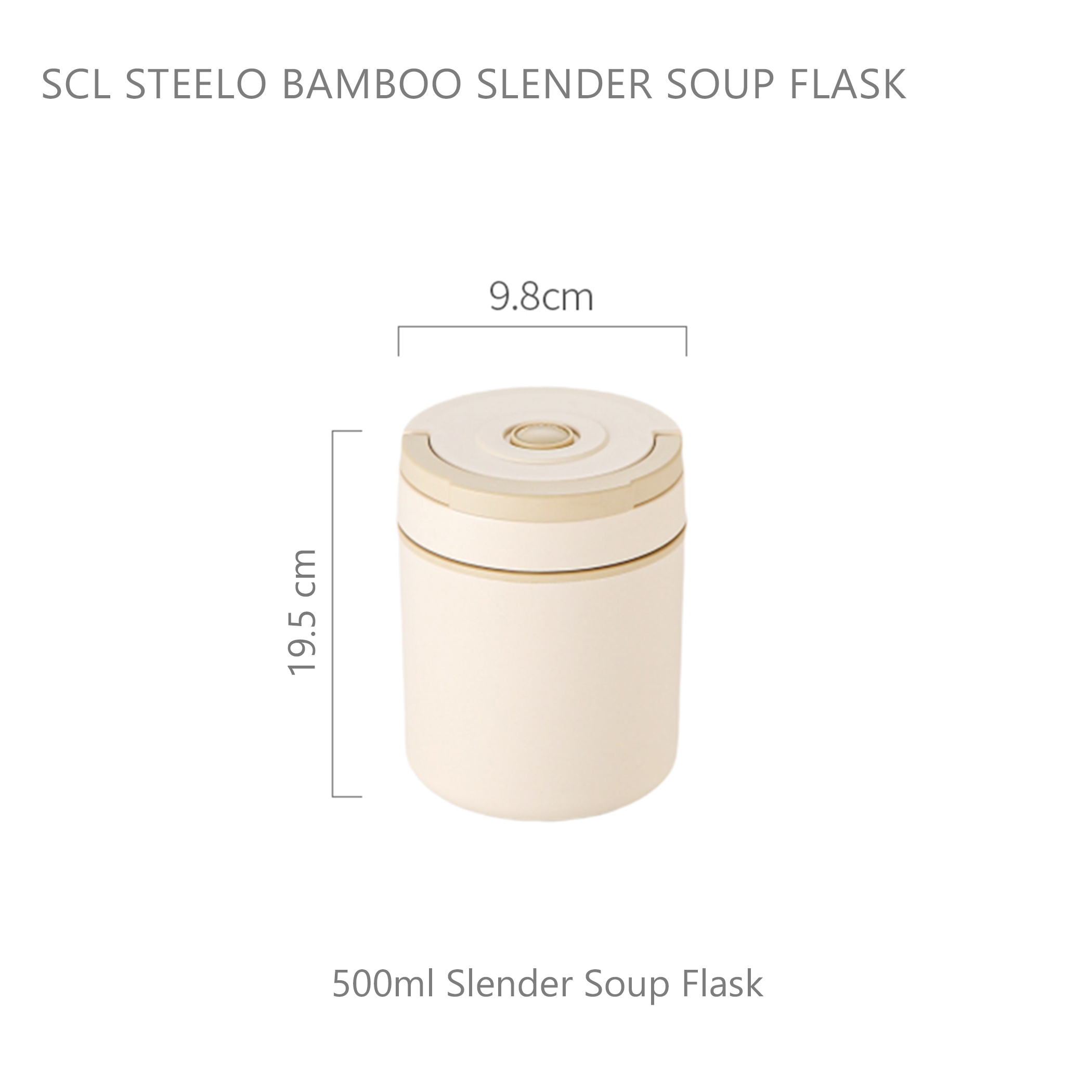 SCL Steelo Bamboo Slender Soup Flask | 500ml | Safe for Hot & Cold Liquids | Leakproof, Airtight & Eco-friendly Insulated Flask for Everyday Travel | Tiffin