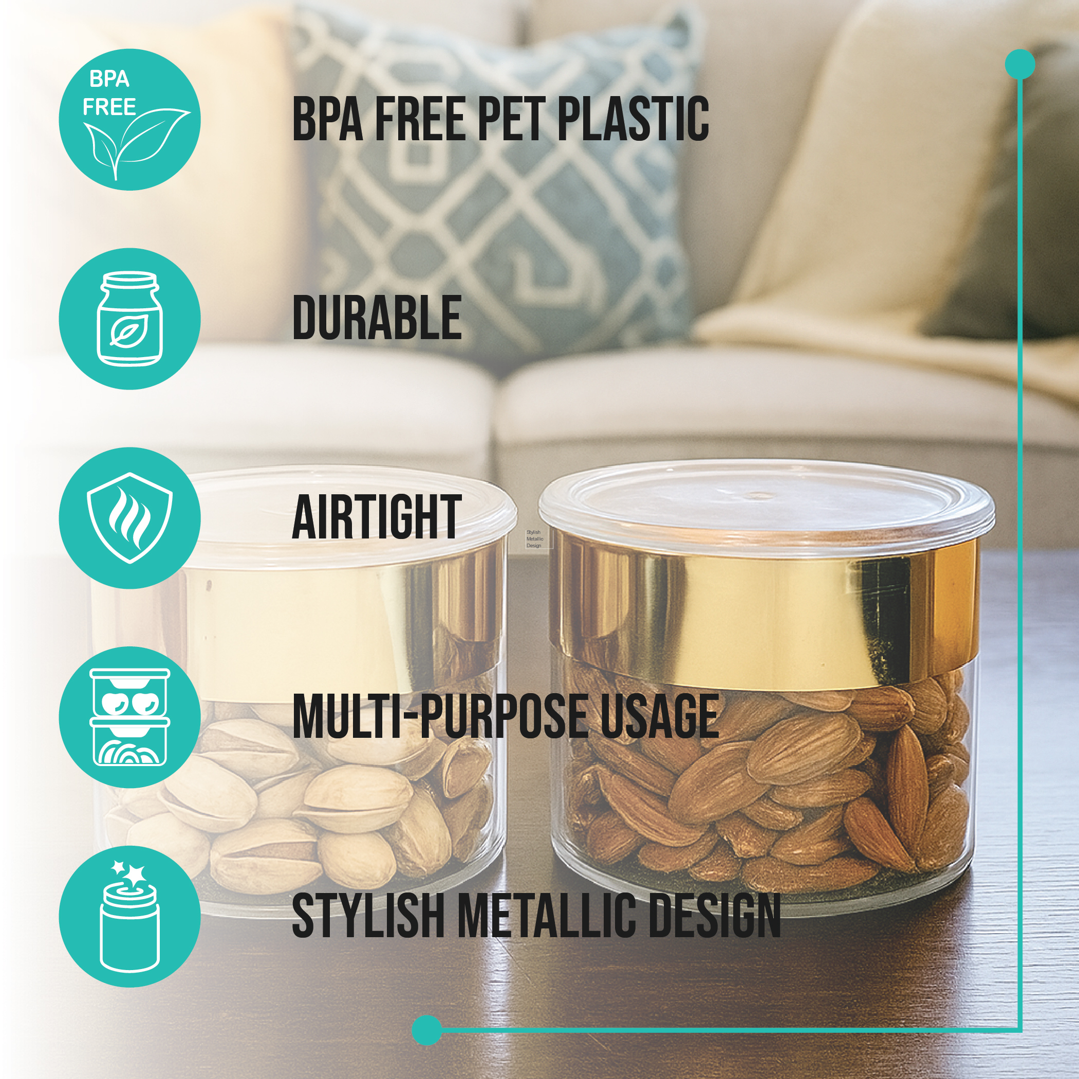 | ✔ Elegant Gold-Finish Lids – Designer lids with a luxurious golden touch for a premium appearance. |