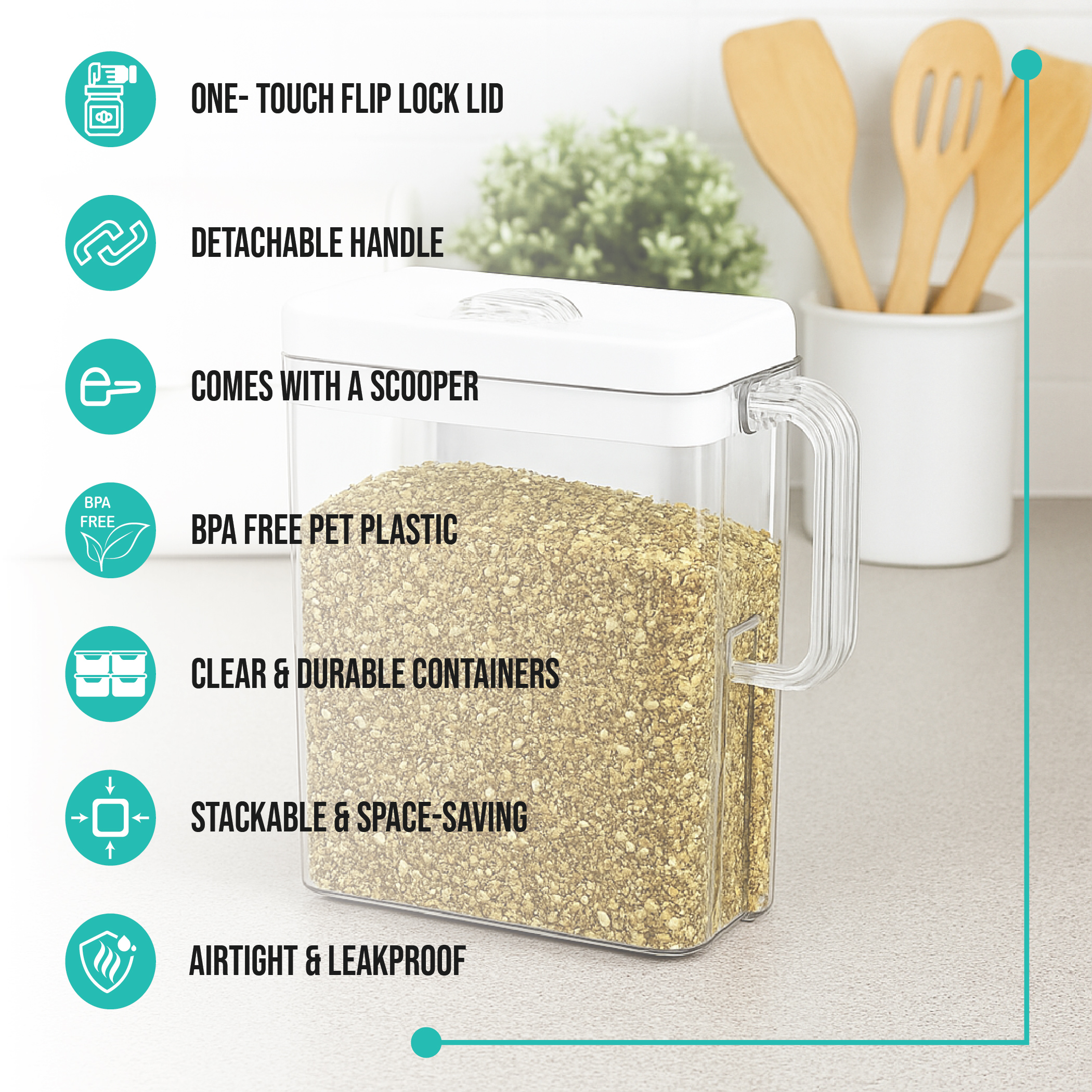 | ✔ Ideal for Multipurpose Use – Perfect for storing grains, pulses, flour, sugar, snacks, pasta, and more. |