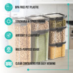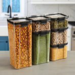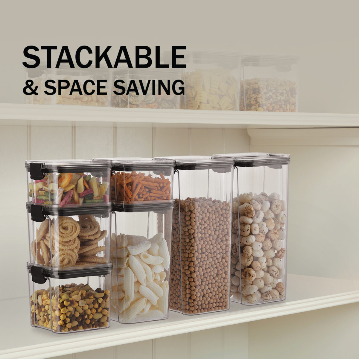 – a smart, space-saving solution designed to keep your snacks, pulses, cereals, and dry fruits fresher for longer. Crafted from durable BPA-free plastic, these containers come with secure clip-lock lids that seal tightly to prevent moisture and air from getting in. The modular design allows for easy stacking, maximizing storage in cabinets, drawers, or countertops. Their crystal-clear body lets you instantly recognize contents, making kitchen organization effortless. |