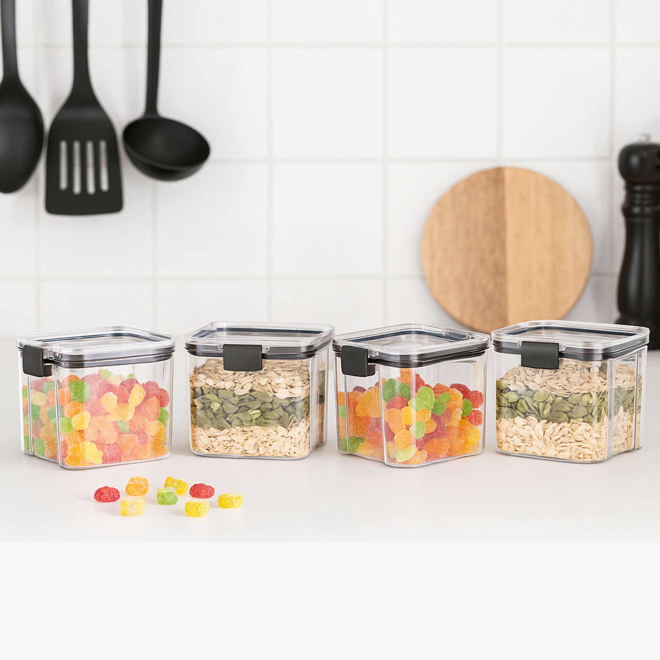 | – a smart, space-saving solution designed to keep your snacks, pulses, cereals, and dry fruits fresher for longer. Crafted from durable BPA-free plastic, these containers come with secure clip-lock lids that seal tightly to prevent moisture and air from getting in. The modular design allows for easy stacking, maximizing storage in cabinets, drawers, or countertops. Their crystal-clear body lets you instantly recognize contents, making kitchen organization effortless. |