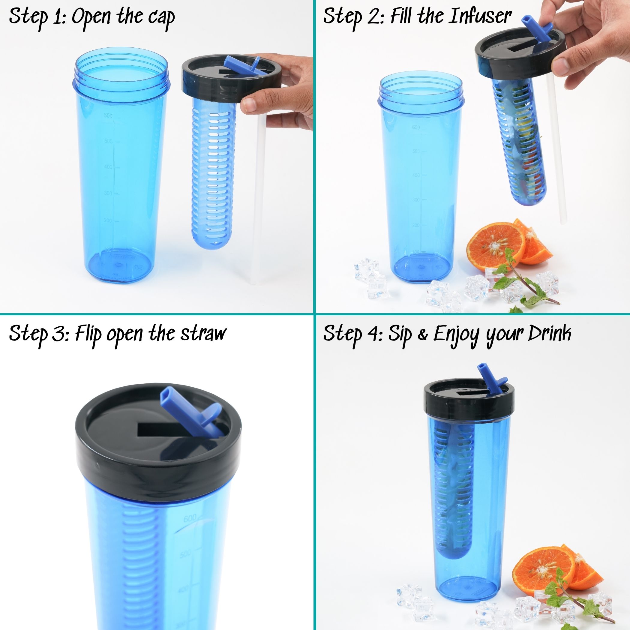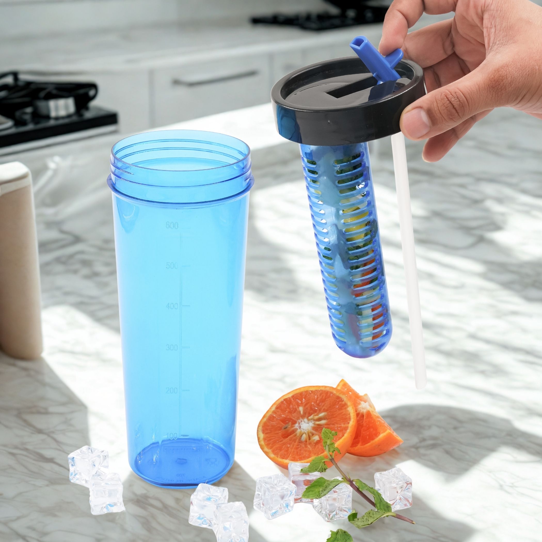 Transparent Design with Volume Markings – Easily monitor water intake with clear level indicators. Fits ice cubes for extra refreshment.