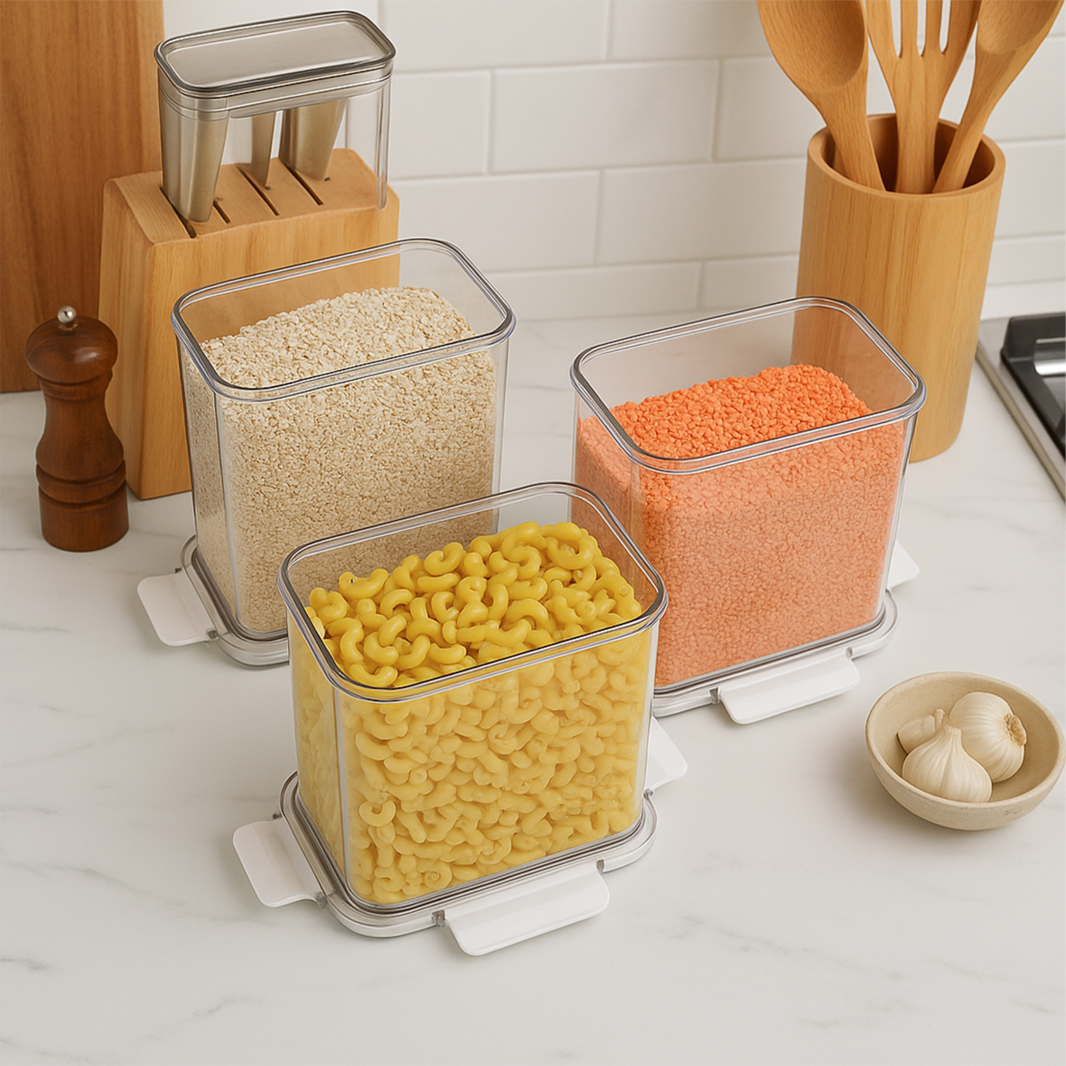 | ✔ Multi-Purpose Use – Great for grains, snacks, masalas, pulses, fruits, leftovers & more. |