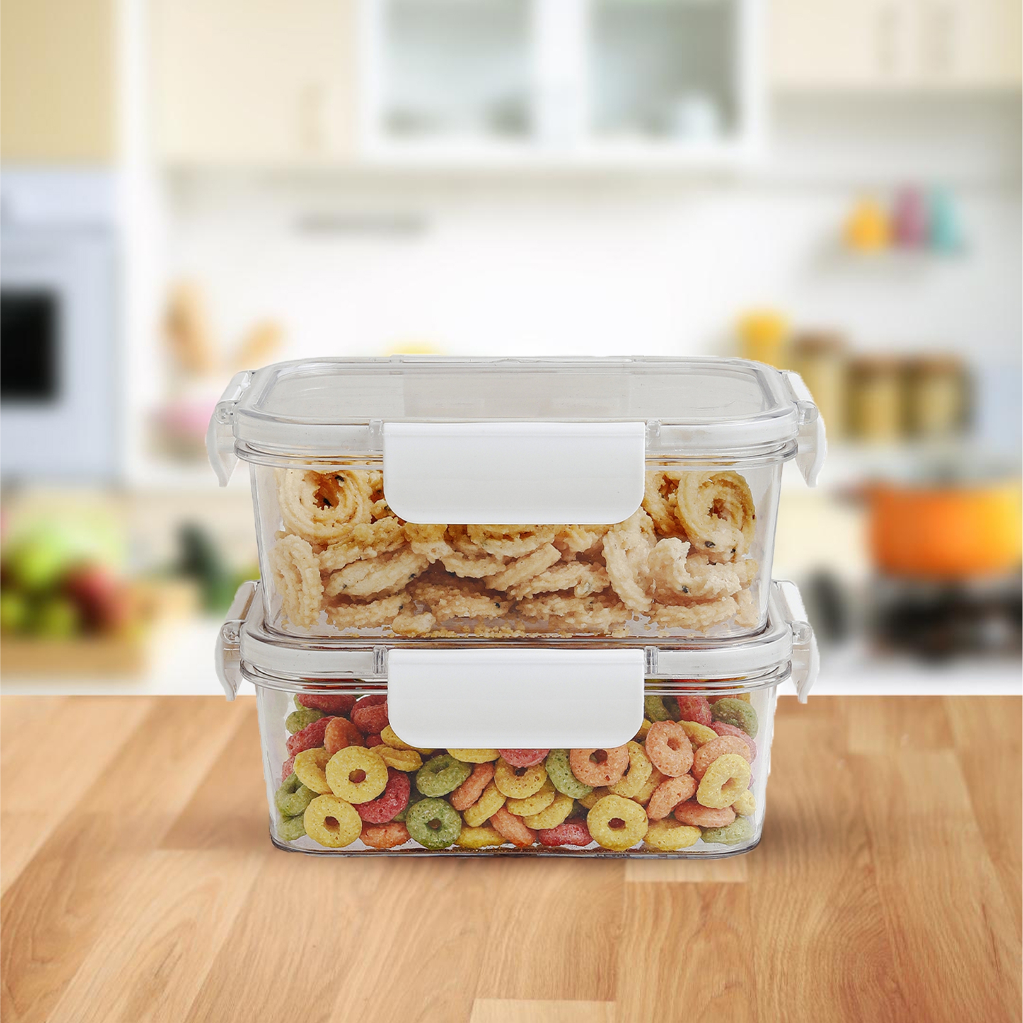 | -a smart and space-saving storage solution designed to keep your pantry, fridge, and kitchen neatly arranged. Made from durable, food-grade PET plastic, these transparent containers are ideal for storing everything from lentils and spices to snacks, pulses, cereals, fruits, and leftovers. The rectangular shape helps maximize shelf space, while the secure-fit lids ensure your food stays fresh and protected from moisture. Available in 7 versatile sizes (300ml, 500ml, 800ml, 900ml, 1200ml, 1400ml, and 2000ml), these containers offer a perfect fit for every storage need — whether you’re meal-prepping, bulk-storing groceries, or tidying up a packed refrigerator. |