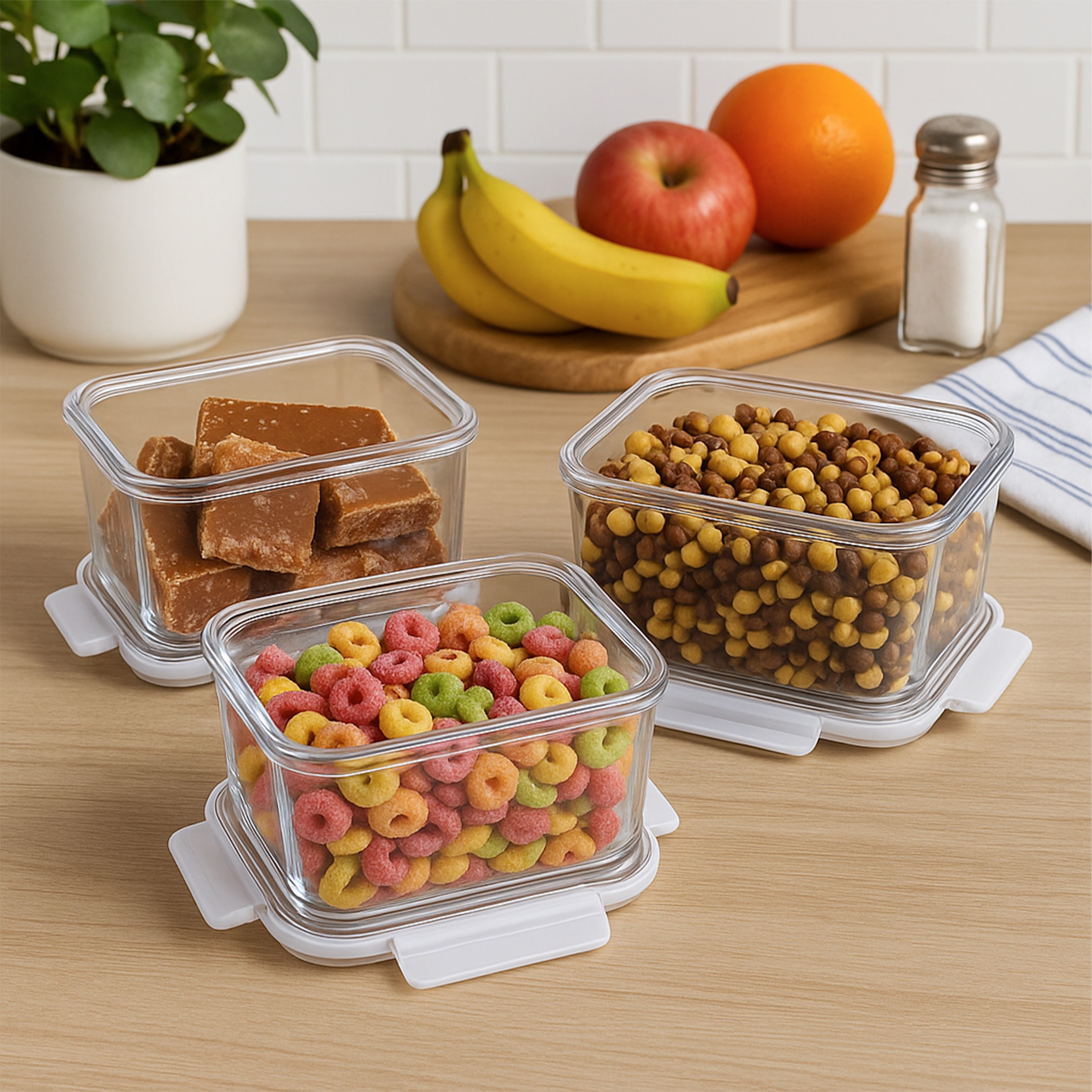 | ✔ Multi-Purpose Use – Great for grains, snacks, masalas, pulses, fruits, leftovers & more. |