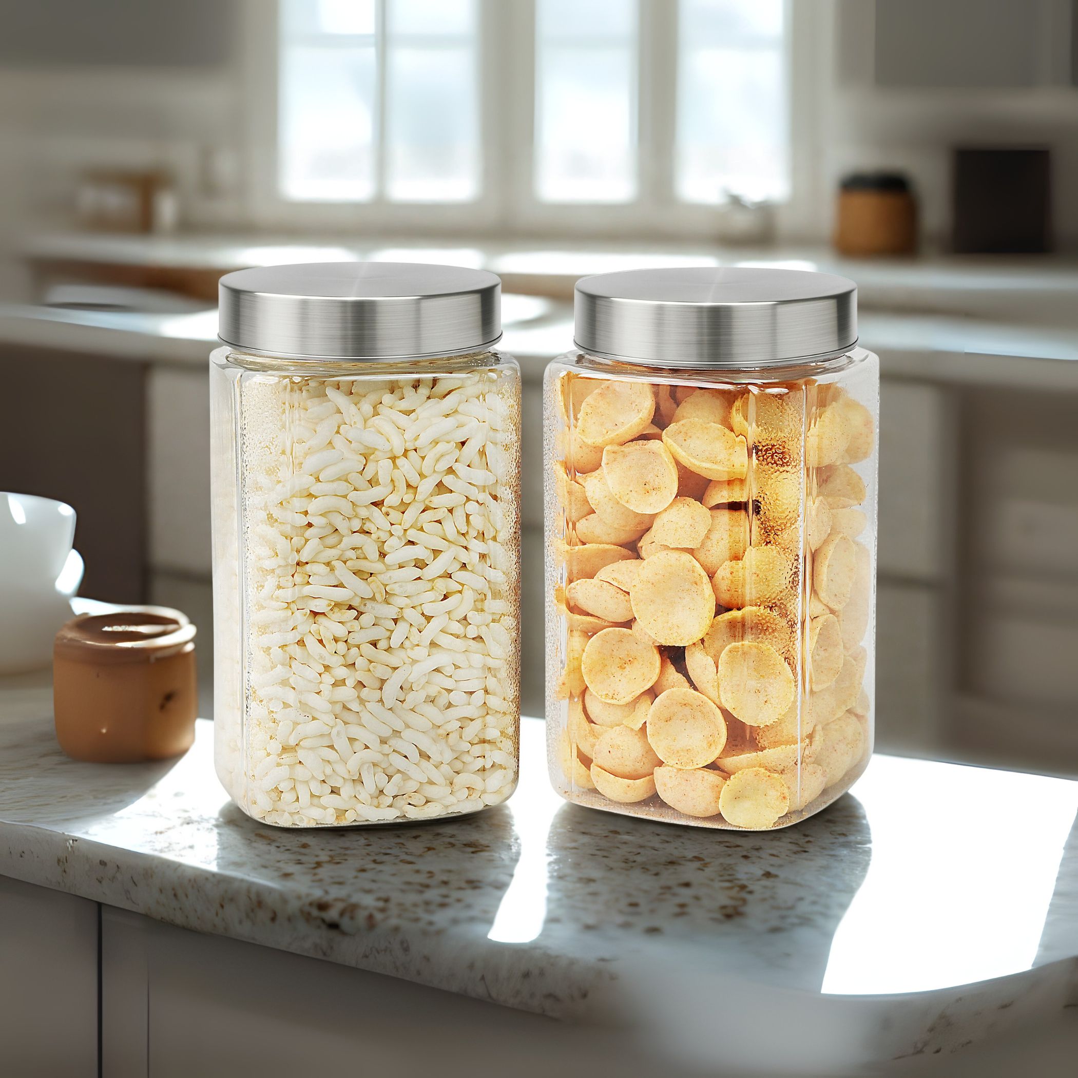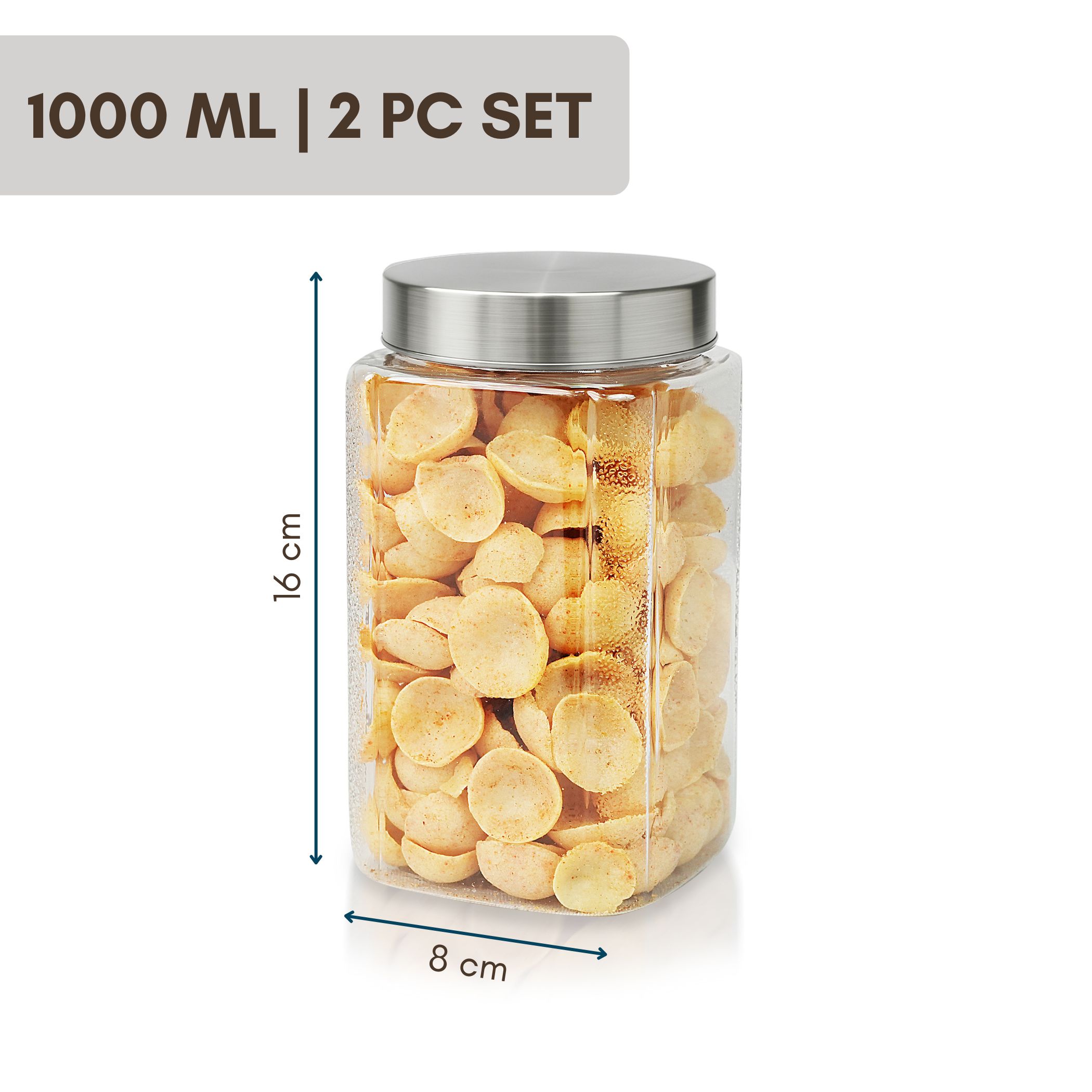 | – the perfect blend of clarity, strength, and sophistication. Each container is made from crystal-clear BPA-free plastic and topped with a sleek stainless steel lid for an airtight seal. Whether you’re storing grains, dals, spices, or dry snacks, these jars keep your food fresh and visible at all times. Designed to be stackable, space-saving, and modern, these jars bring effortless elegance to your kitchen shelves and drawers. Their square shape ensures maximum utilization of storage space, and their clear body makes it easy to monitor stock levels. Durable, hygienic, and beautifully designed, the Varg Stainless Jar Set is your go-to solution for a clean and efficient kitche |
