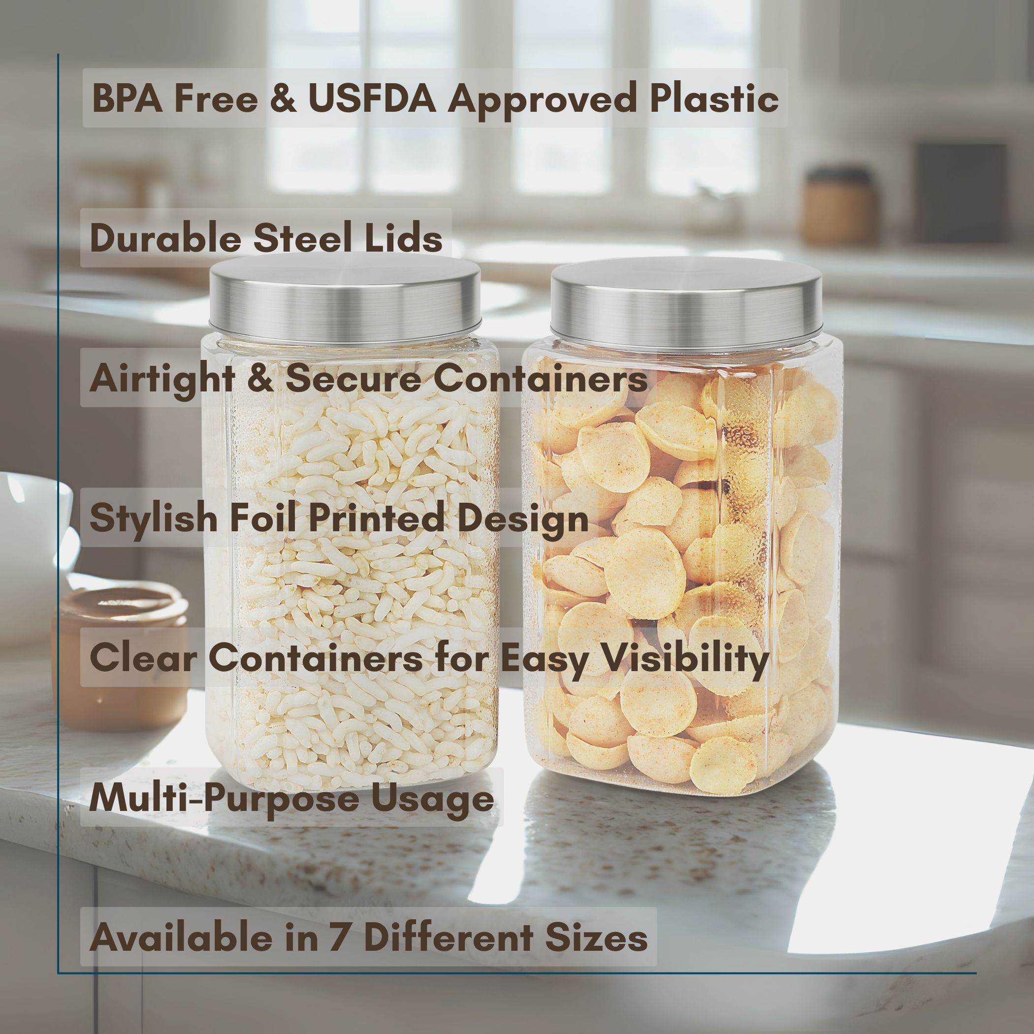 | ✔ Multi-Purpose Use – Great for grains, snacks, masalas, pulses, fruits, leftovers & more. |