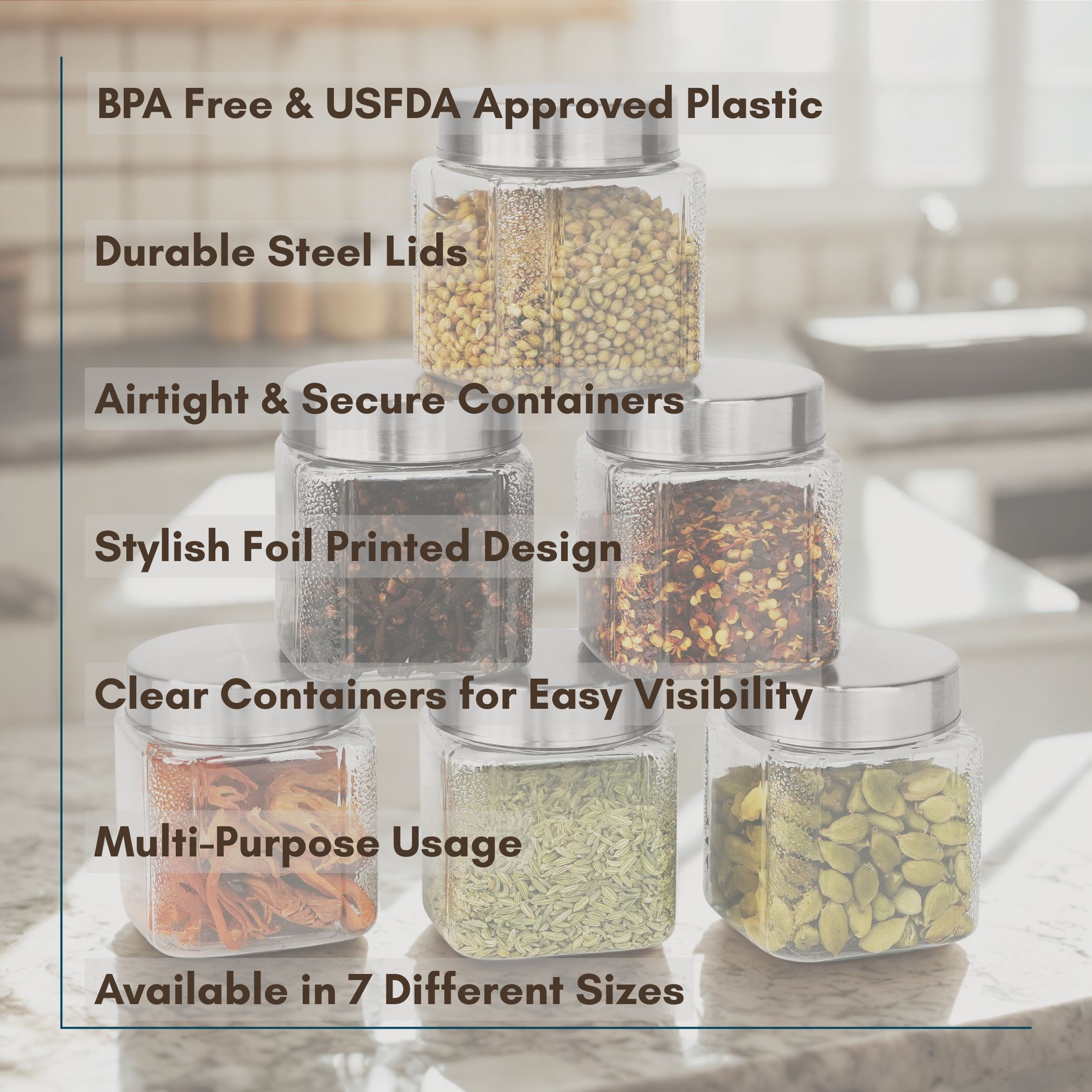 | ✔ Multi-Purpose Use – Great for grains, snacks, masalas, pulses, fruits, leftovers & more. |