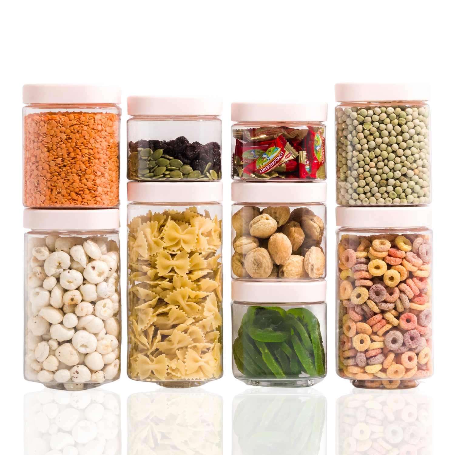 Capacity:- 450ML x 2, 600ML x 2, 750ML x 2, 1000ML x 2, 1250ML x 1 Set Pcs Material:- Bottom Material PET, Cap is made of PET Material