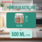 | SCL Steelo Homely Jars are designed to bring both functionality and elegance to your kitchen storage. Made from premium quality, BPA-free PET plastic, these jars are lightweight, durable, and 100% food-safe, ensuring that your snacks, spices, pulses, and dry fruits stay fresh for longer. The crystal-clear body allows easy visibility of contents, while the wide-mouth design makes filling and cleaning effortless. With their sleek and modern look, these jars not only help in keeping your kitchen well-organized but also add a touch of style to your shelves or countertops. Perfect for everyday use, Steelo Homely Jars are the ideal choice for smart, hygienic, and clutter-free storage. |