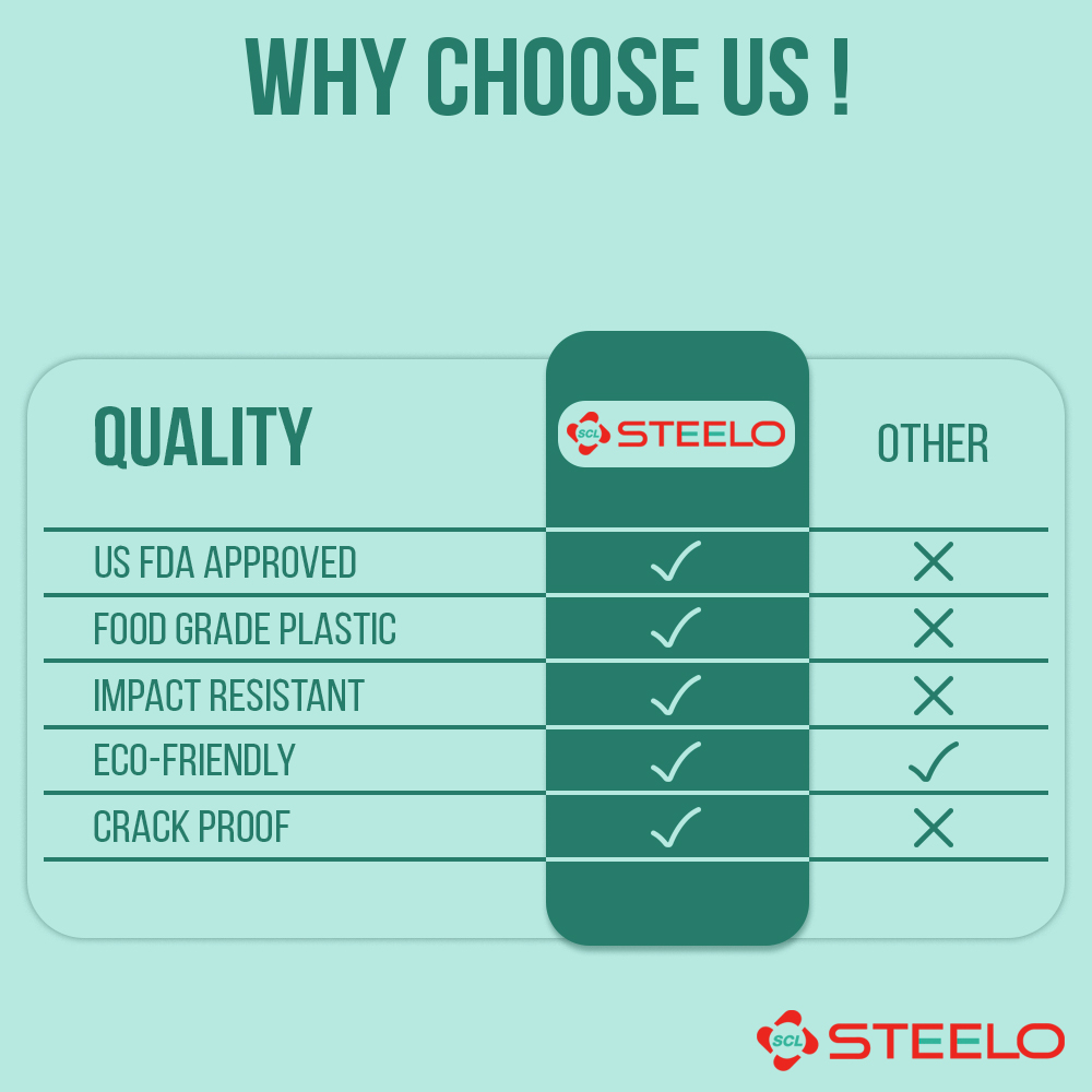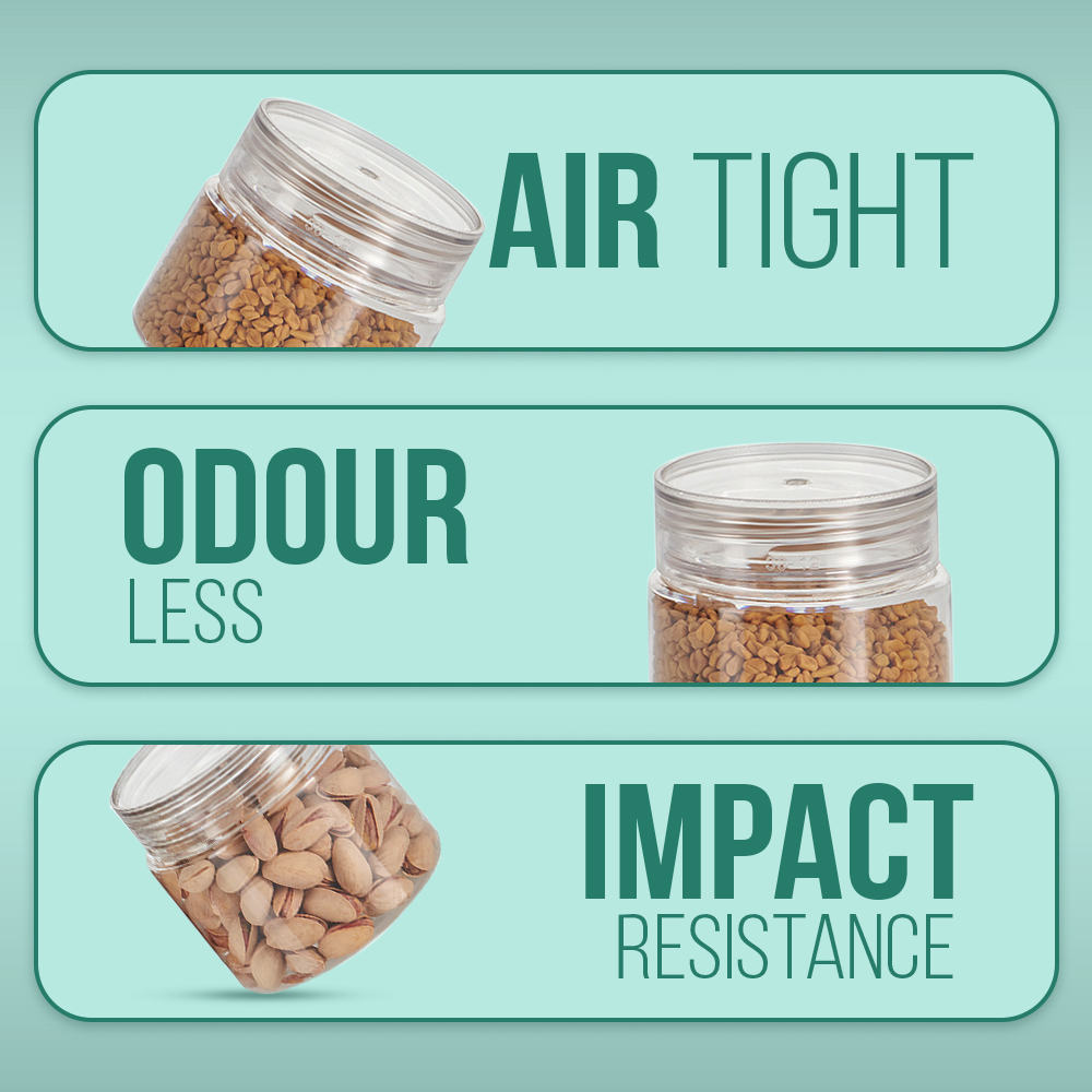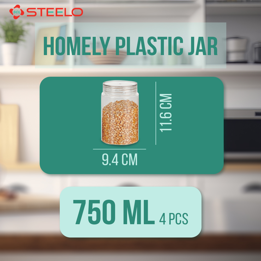 | SCL Steelo Homely Jars are designed to bring both functionality and elegance to your kitchen storage. Made from premium quality, BPA-free PET plastic, these jars are lightweight, durable, and 100% food-safe, ensuring that your snacks, spices, pulses, and dry fruits stay fresh for longer. The crystal-clear body allows easy visibility of contents, while the wide-mouth design makes filling and cleaning effortless. With their sleek and modern look, these jars not only help in keeping your kitchen well-organized but also add a touch of style to your shelves or countertops. Perfect for everyday use, Steelo Homely Jars are the ideal choice for smart, hygienic, and clutter-free storage. |