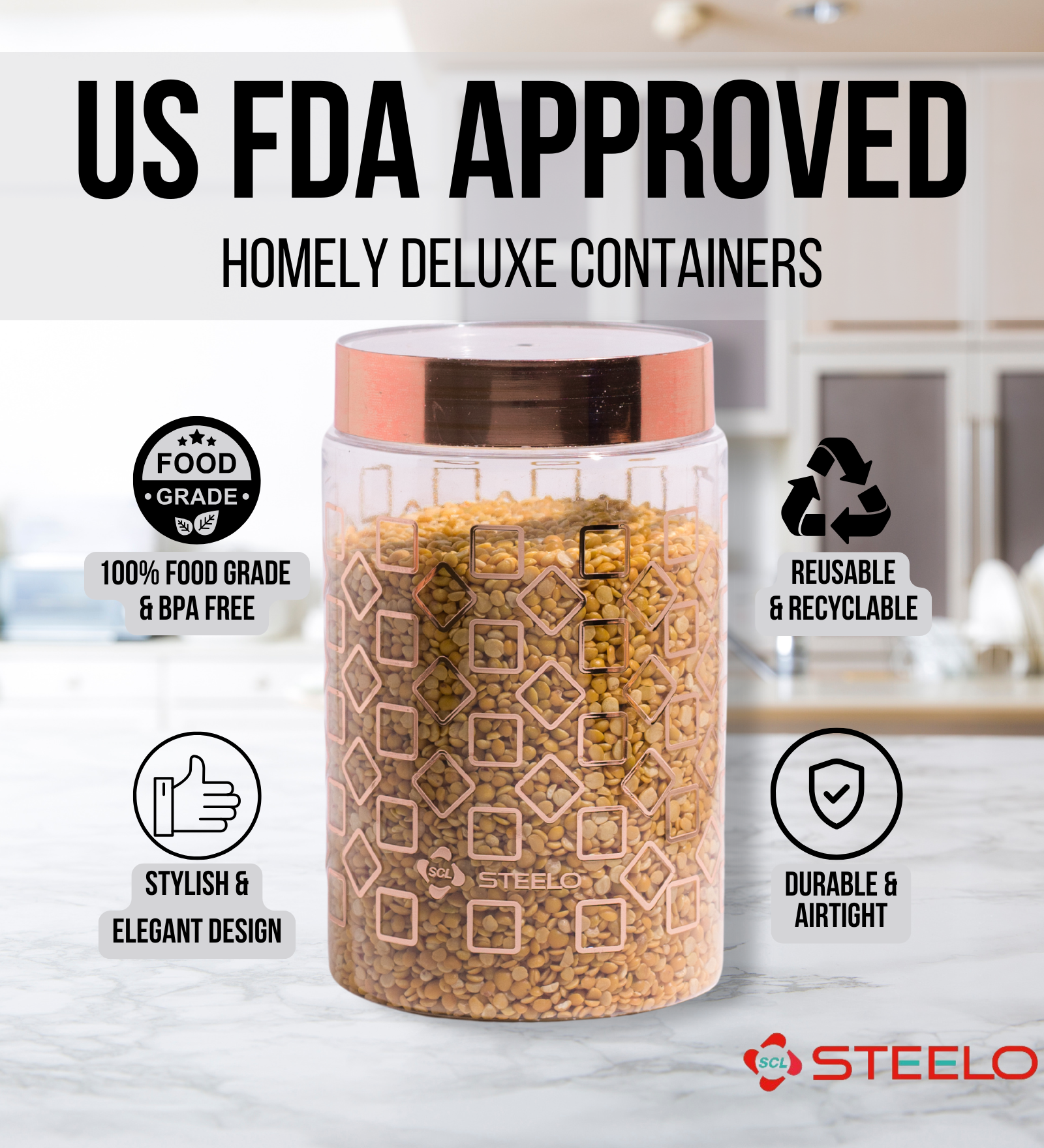 | -a blend of elegance, functionality, and premium quality. These stylish rose gold containers are specially crafted to fit seamlessly into modular kitchens, keeping your countertops and cabinets clutter-free while adding a touch of sophistication. |