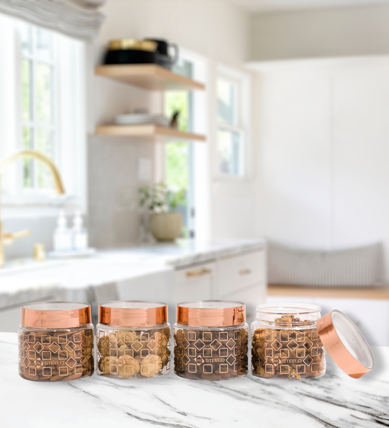 -a blend of elegance, functionality, and premium quality. These stylish rose gold containers are specially crafted to fit seamlessly into modular kitchens, keeping your countertops and cabinets clutter-free while adding a touch of sophistication.