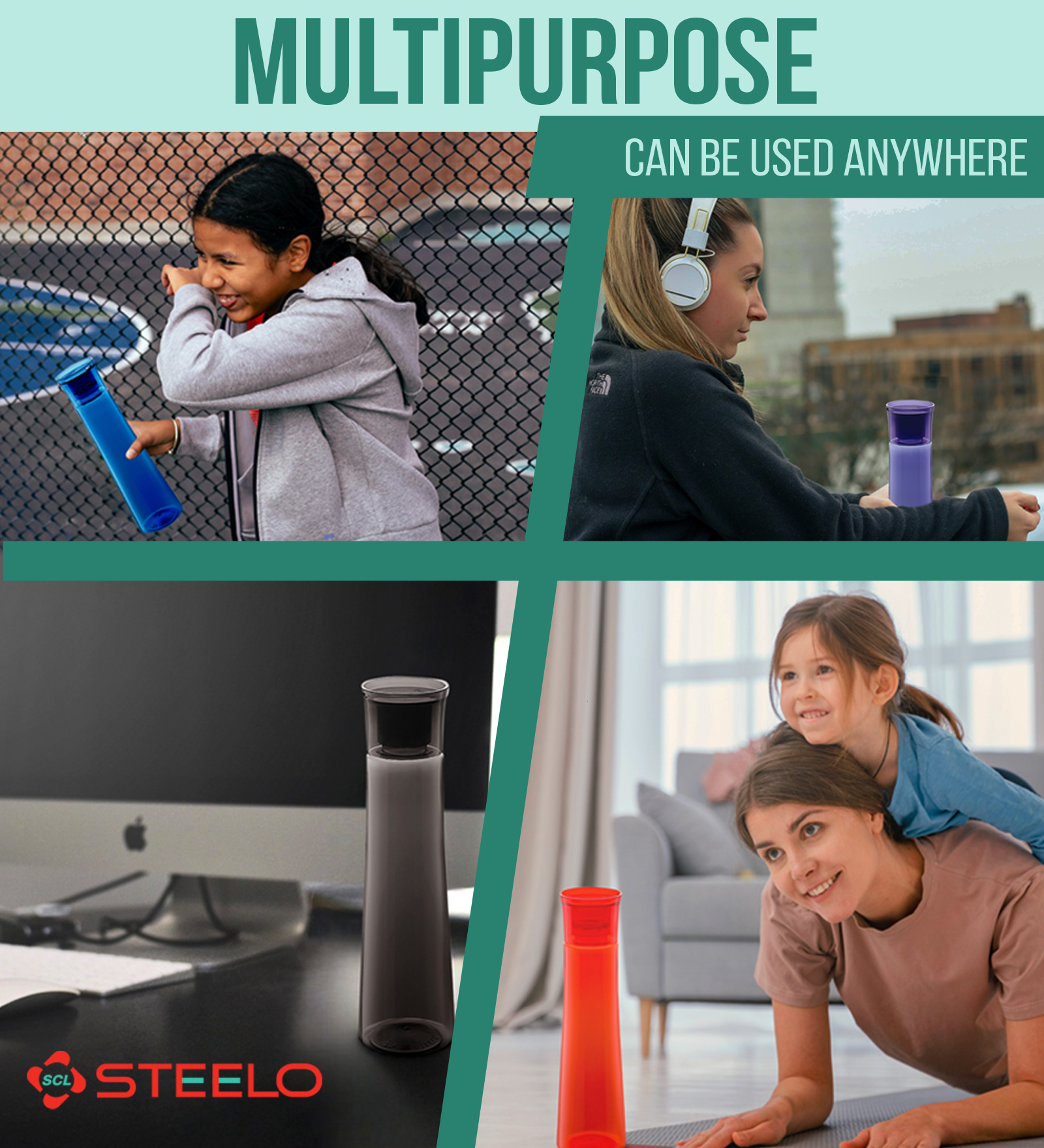 | SCL Steelo Water Bottles are designed to keep you hydrated in style, whether at home, office, gym, or travel. This 4-piece set of 1000 ml bottles is made from premium BPA-free, food-grade PET plastic, ensuring safe, durable, and lightweight use. Each bottle features a leak-proof cap and ergonomic design for easy handling and comfortable drinking. The crystal-clear body allows you to monitor water levels at a glance, while the sleek, modern finish makes these bottles both practical and visually appealing. Perfect for everyday hydration, these Steelo Water Bottles combine convenience, safety, and style in one complete set. |