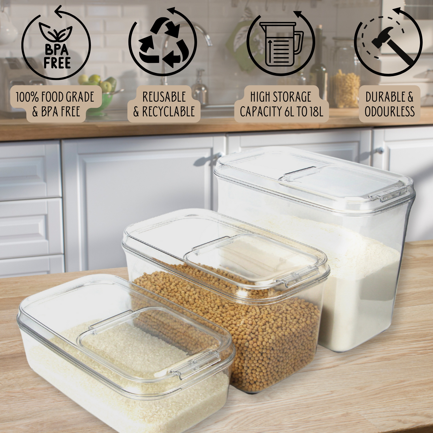 High Storage Capacity: Large container ideal for storing grains, pulses, cereals, snacks, and baking essentials.