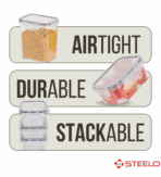 SCL Steelo SoFresh SoClick Containers are designed to make food storage effortless, fresh, and stylish. Made from premium BPA-free, food-grade plastic, these containers are durable, lightweight, and safe for everyday use. Their standout feature is the smart SoClick locking mechanism, which provides a secure airtight seal with a simple click, ensuring your food stays fresh, crisp, and free from moisture. The clear body allows easy identification of contents, while the wide-mouth design makes filling, pouring, and cleaning hassle-free. Perfect for organizing pulses, cereals, snacks, dry fruits, or spices, SoFresh SoClick Containers not only keep your kitchen neatly arranged but also add a touch of modern functionality to your storage solutions.