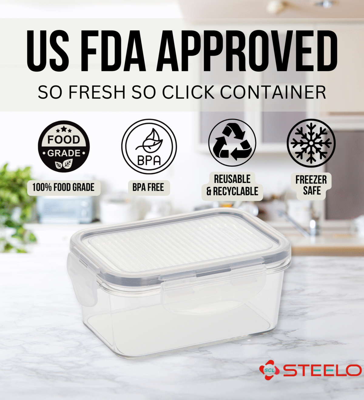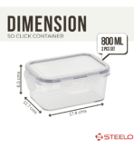 SCL Steelo SoFresh SoClick Containers are designed to make food storage effortless, fresh, and stylish. Made from premium BPA-free, food-grade plastic, these containers are durable, lightweight, and safe for everyday use. Their standout feature is the smart SoClick locking mechanism, which provides a secure airtight seal with a simple click, ensuring your food stays fresh, crisp, and free from moisture. The clear body allows easy identification of contents, while the wide-mouth design makes filling, pouring, and cleaning hassle-free. Perfect for organizing pulses, cereals, snacks, dry fruits, or spices, SoFresh SoClick Containers not only keep your kitchen neatly arranged but also add a touch of modern functionality to your storage solutions. |