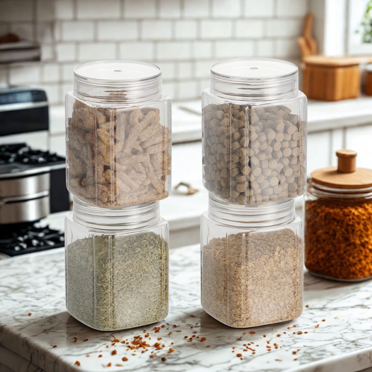 – the perfect blend of clarity, strength, and sophistication. Each container is made from crystal-clear BPA-free plastic and topped with a sleek stainless steel lid for an airtight seal. Whether you’re storing grains, dals, spices, or dry snacks, these jars keep your food fresh and visible at all times. Designed to be stackable, space-saving, and modern, these jars bring effortless elegance to your kitchen shelves and drawers. Their square shape ensures maximum utilization of storage space, and their clear body makes it easy to monitor stock levels. Durable, hygienic, and beautifully designed, the Varg Stainless Jar Set is your go-to solution for a clean and efficient kitche |